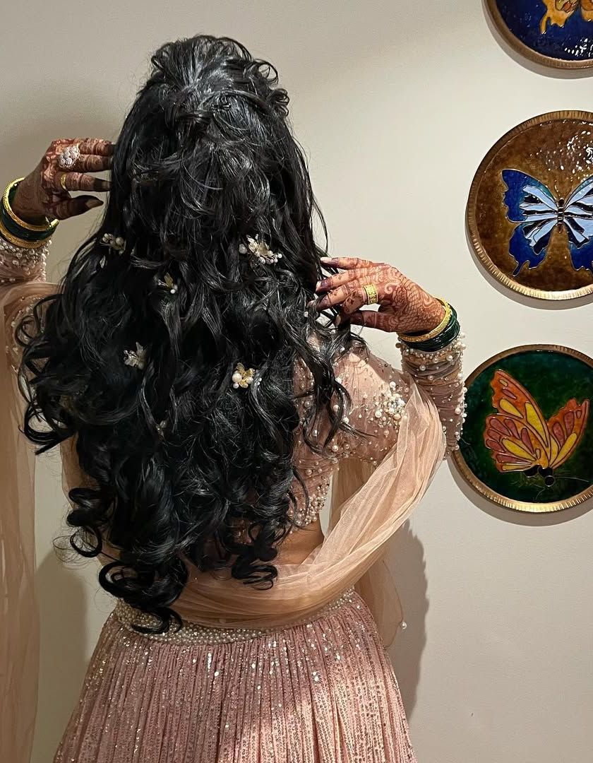 Your hairstyle is just as important as your makeup in completing your look. I create a wide range of hairstyles, from classic floral buns and traditional braids perfect for sarees, to soft curls and modern updos for lehengas and gowns. This gallery showcases the variety and intricacy of my hairstyling work.