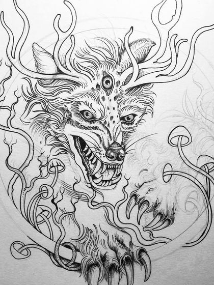 I create detailed, hand-drawn black and white tattoo designs in my own surreal and nature-inspired style for you to take to your tattoo artist.