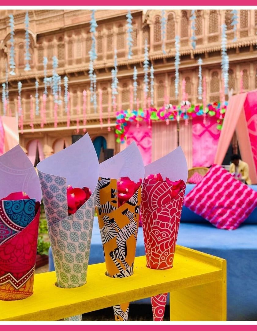 Your vision is our mission. We design and create fully customized decor for all your wedding functions, bringing any theme to life, from vibrant Rajasthani melas and classic red florals to chic monochrome sangeet nights and unique blue pottery concepts.