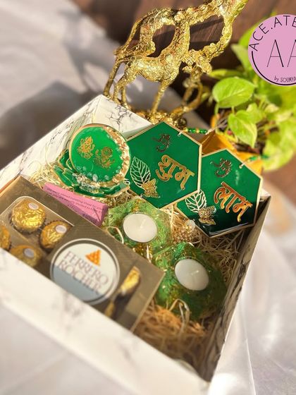 I make handmade resin gifts and hampers for festivals, weddings, and office events that last, can be personalized, and are available in bulk for return favors or corporate gifting.