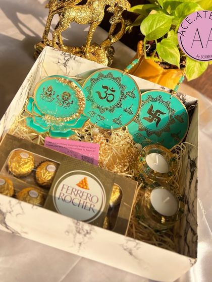 I make handmade resin gifts and hampers for festivals, weddings, and office events that last, can be personalized, and are available in bulk for return favors or corporate gifting.