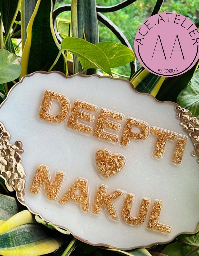 Find the perfect one-of-a-kind gift for your loved ones. I create custom resin pieces like monogram stands, keychains with motivational quotes or divine symbols, LED lamps, and planters, all handmade with pyar.