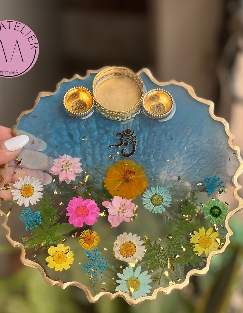 Bring beauty to your pooja room with handmade decor. I create custom resin pooja thalis with real flowers and sacred icons, car divinities for blessings on the go, and Swastik hangings. Bulk orders for festivals are always welcome.