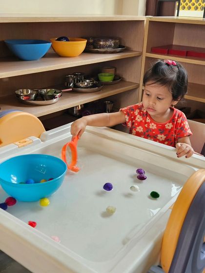 We offer full-day childcare where kids follow a Montessori routine with hands-on activities, safe play, and fresh vegetarian meals in a supervised environment.