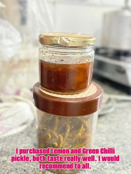Pickles & Festive Specials - We make oil-free mango pickle, sun-dried lemon pickle, stuffed green chilli pickle, organic jaggery, and Kanji Vada.