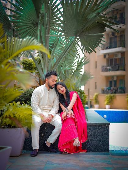 We specialize in creating unique pre-wedding moments through both scenic and styled shoots. Our signature offering includes dramatic hilltop photography with helicopters for couples seeking adventure. We blend cinematic techniques with candid captures to create visually stunning portraits.