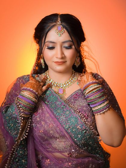 The bride is the star of the wedding, and I make sure her portraits reflect that. I focus on capturing the intricate details of the lehenga, the flawless makeup, and the beautiful jewelry, using a mix of classic poses and candid moments to showcase her personality and grace.