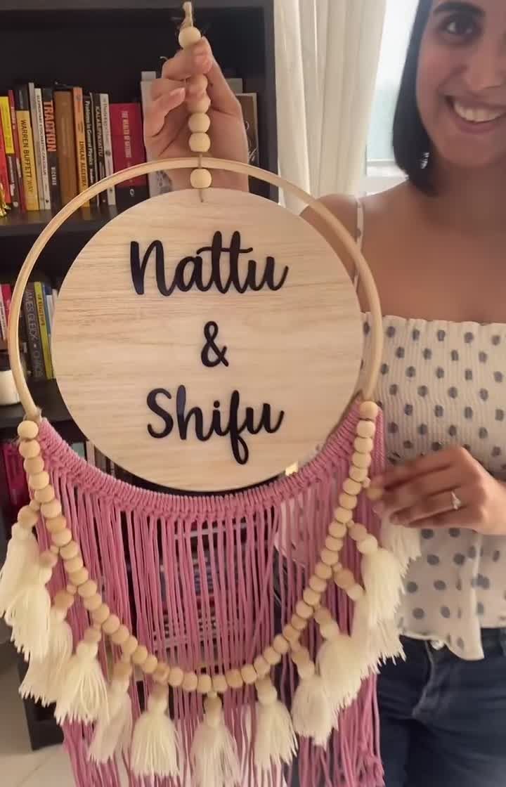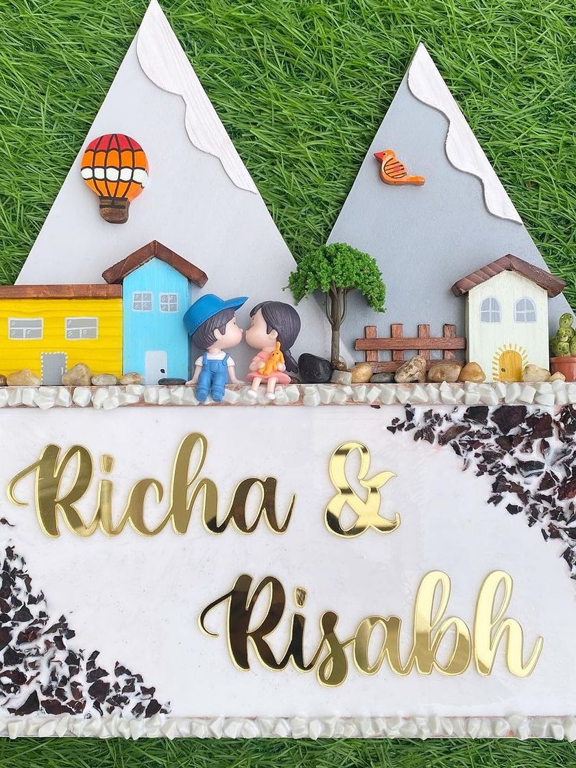 Preserve your most precious memories. I can incorporate dried petals from your wedding garlands or other special flowers into your nameplate using crystal-clear resin. This creates a truly one-of-a-kind keepsake that holds your story.
