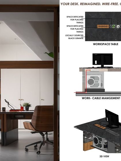 We believe workspaces should breathe. Our designs, including our own award-winning studio 'Akshara Vinyasaa', integrate nature through green walls, natural materials like Kota stone, and climate-responsive features that reduce reliance on air conditioning.