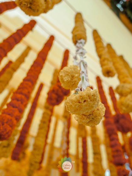 - Vibrant floral arrangements using traditional flowers like marigolds and roses