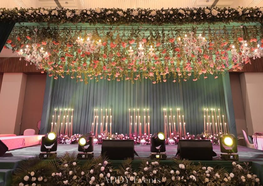 We transform venues into high-energy spaces perfect for Sangeet and Cocktail nights. Our designs range from modern and graphic with elements like chevron floors and LED screens, to glamorous and romantic with floral ceilings and candlelit stages. We focus on creating a vibrant atmosphere with dynamic lighting and stylish lounges for a night of dance, music, and celebration.