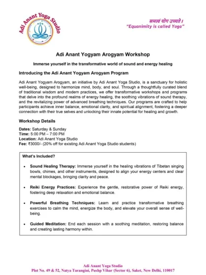 Studio specials - Every Friday: 108 Surya Namaskar. We mix yoga with Hindu Dand, weight training for full-body fitness.