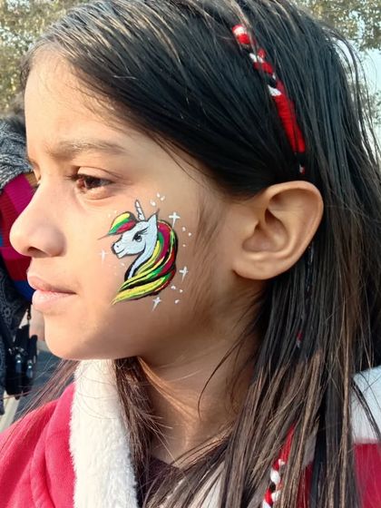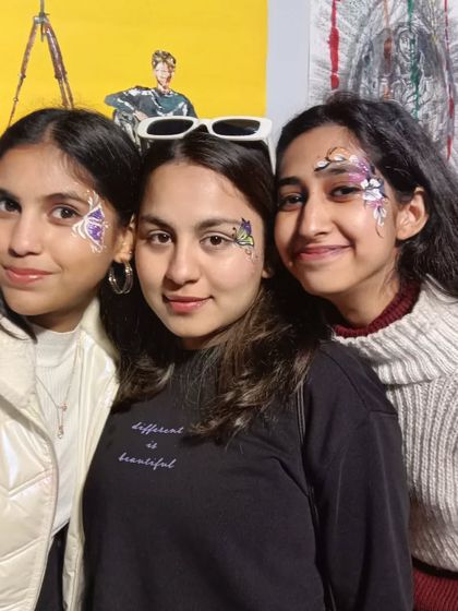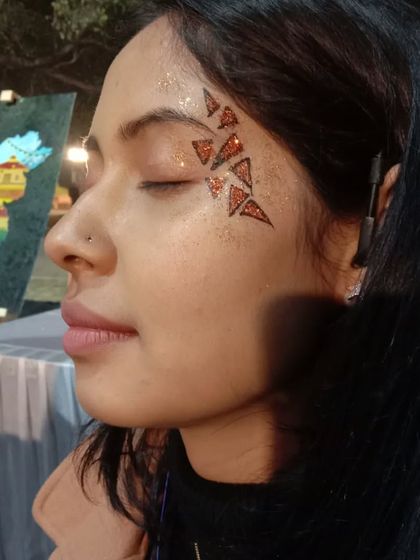 Hey, I’m Aditi! You’ve probably seen my work at DU or Amity fests—faces with glitter, wild butterflies, and smiles. My Insta? Just happy faces, honestly. For me, it’s not just paint—it's about catching the vibe, making moments pop. Like that line, ‘hamein naachne ka shauk tha, use nachaana aata tha’ (I loved to dance, and she knew how to make me dance). That’s me, helping you get festive and free.