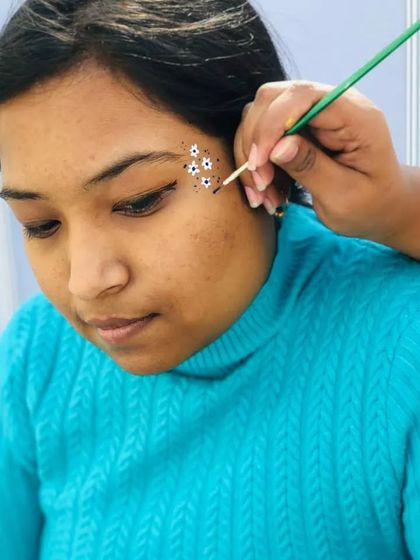 I'm an event artist specializing in face painting and temporary tattoos, often seen at college fests. My work is about creating temporary moments of joy and self-expression.