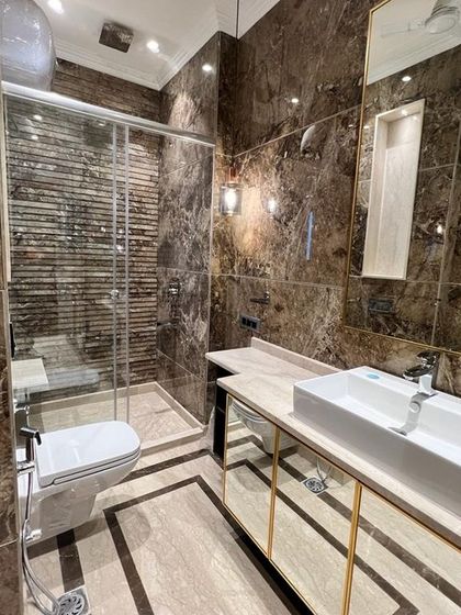 - Spa-like bathrooms with Grohe, Vitra, Jaquar fittings, glass partitions, and marble everywhere