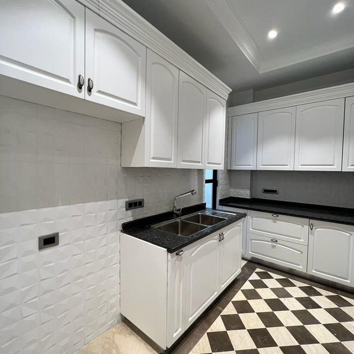 Our kitchens are designed for both functionality and style, featuring a Victorian classical theme. We use high-quality modular cabinets with a durable PU finish, granite countertops, and provide a fully equipped space with a built-in hob and chimney.