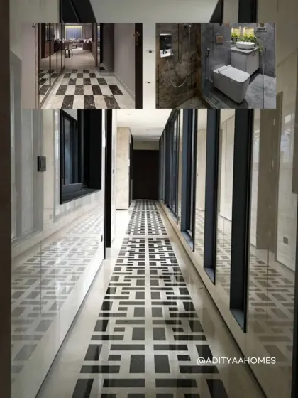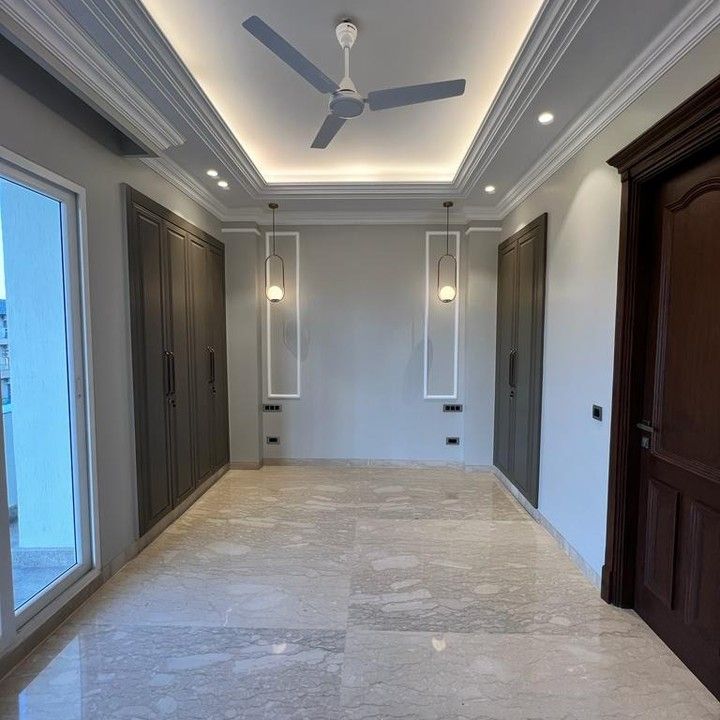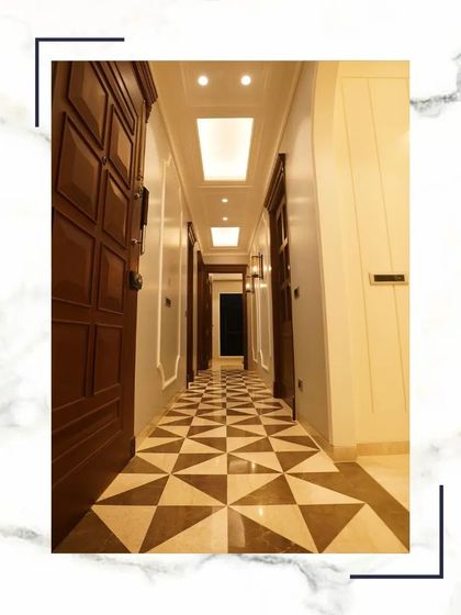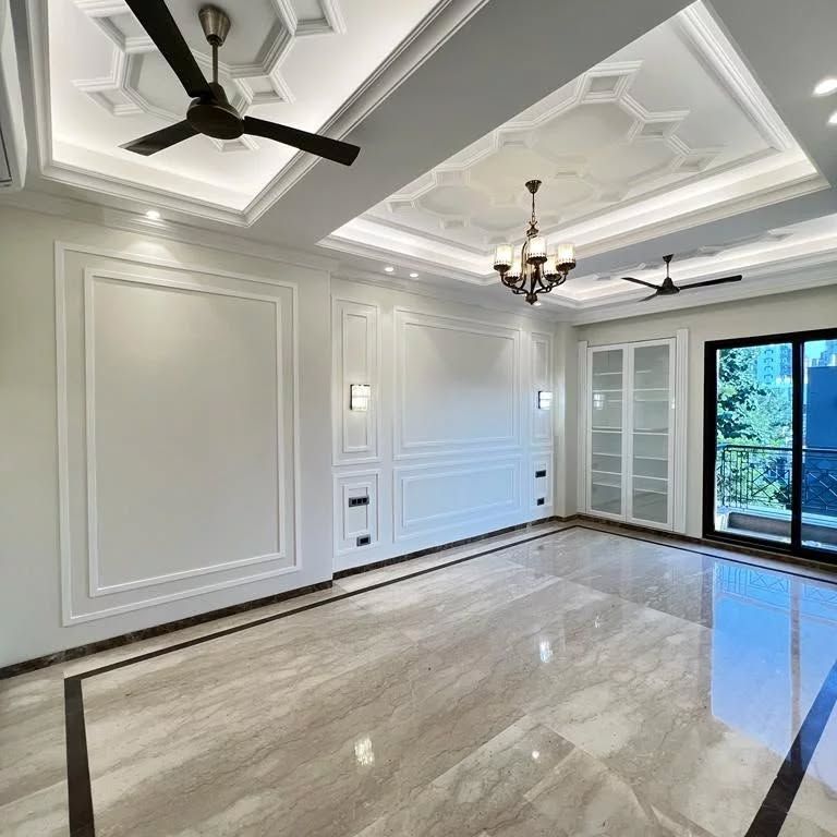 We design living spaces that are grand, airy, and filled with natural light. Our signature features include high-quality Italian marble flooring, classical false ceilings with concealed lighting, and detailed wall mouldings that add a layer of sophistication.