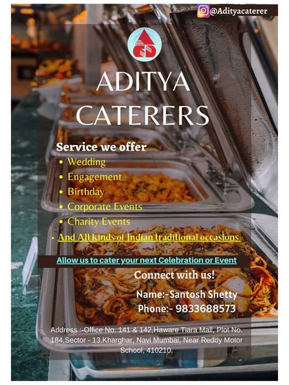 Namaskar! We’re Aditya Caterers, started by me, Santosh Shetty, back in 2006 in Kharghar. Food is our passion, not just a business. For us, every event—lagnasamarambh, birthday, office function—needs great taste in every bite. We’re obsessed with hygiene, from kitchen to plate. Seeing folks happy and enjoying our food is the real joy. Our motto: make celebrations memorable with flavours you’ll remember.
