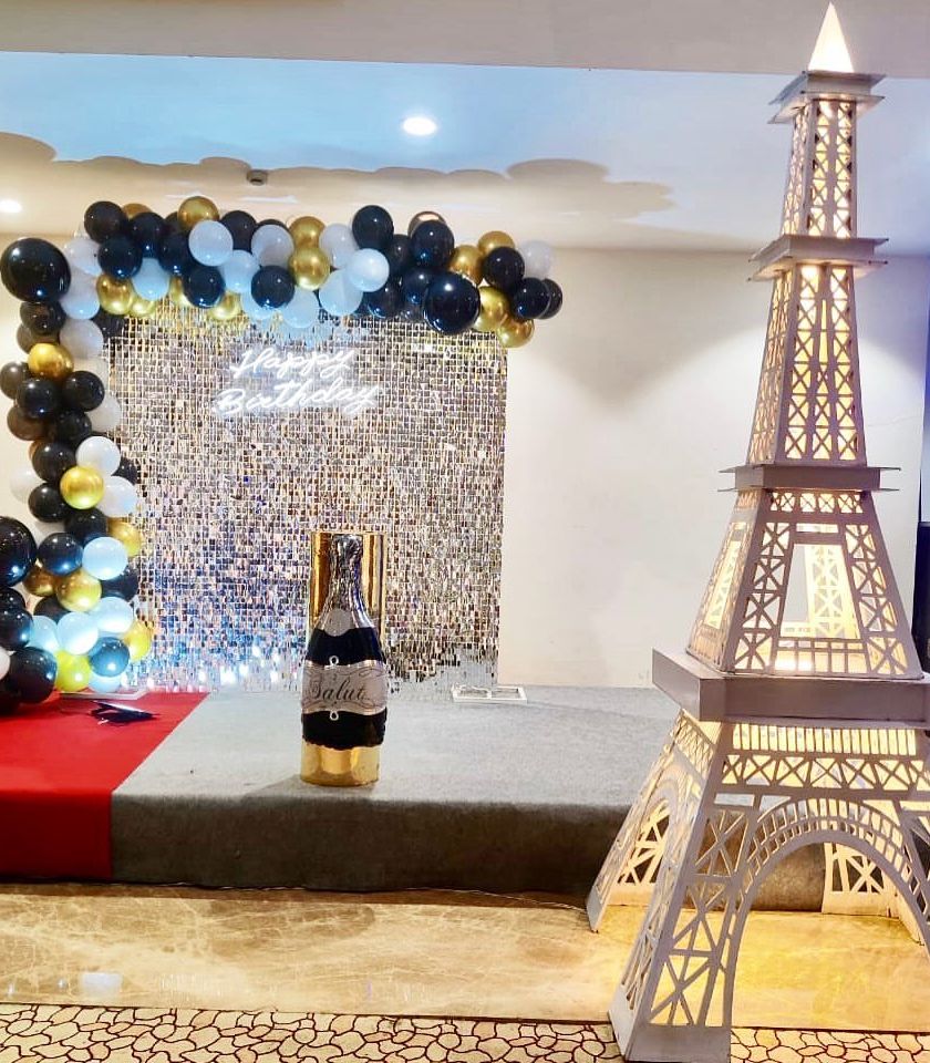 Elevate your event with a unique theme or a standout prop. We offer specialized decorations, including Parisian themes with our Eiffel Tower prop or whimsical butterfly designs complete with hanging chandelier cake stands.