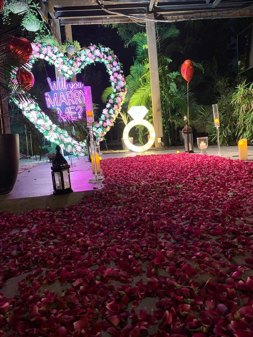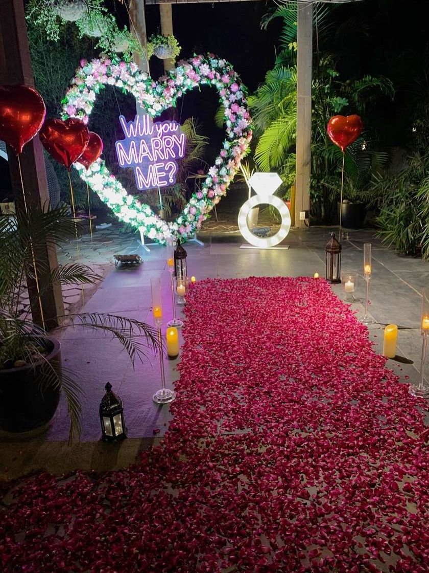 We specialize in creating the perfect atmosphere for you to ask the big question. Our proposal services include everything from dramatic rose petal pathways and candlelight to custom neon signs and large, statement-making props.