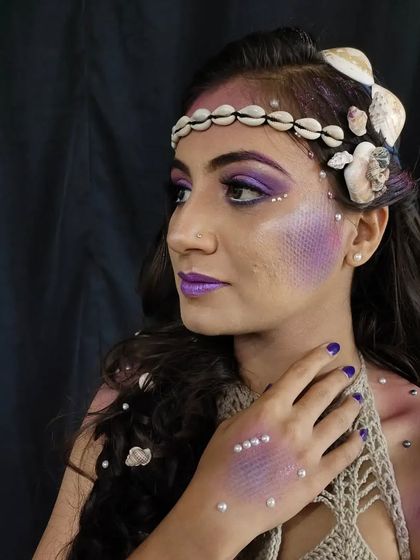 I do custom creative and editorial makeup for shoots, runway, and themed events using pro techniques, body paint, and detailed embellishments.