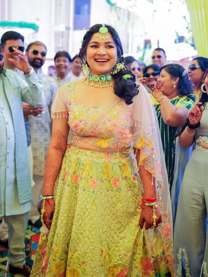 For the Haldi ceremony, I focus on fresh, dewy makeup that looks natural and bright. These looks are designed to be long-lasting and perfectly complement the cheerful, yellow-themed celebrations and floral jewelry.