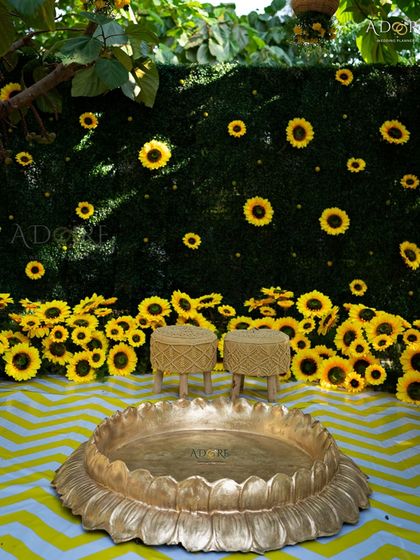 I design Haldi spaces that are full of joy and color. This collection showcases a variety of themes, from traditional marigold setups to cheerful and rustic sunflower designs.