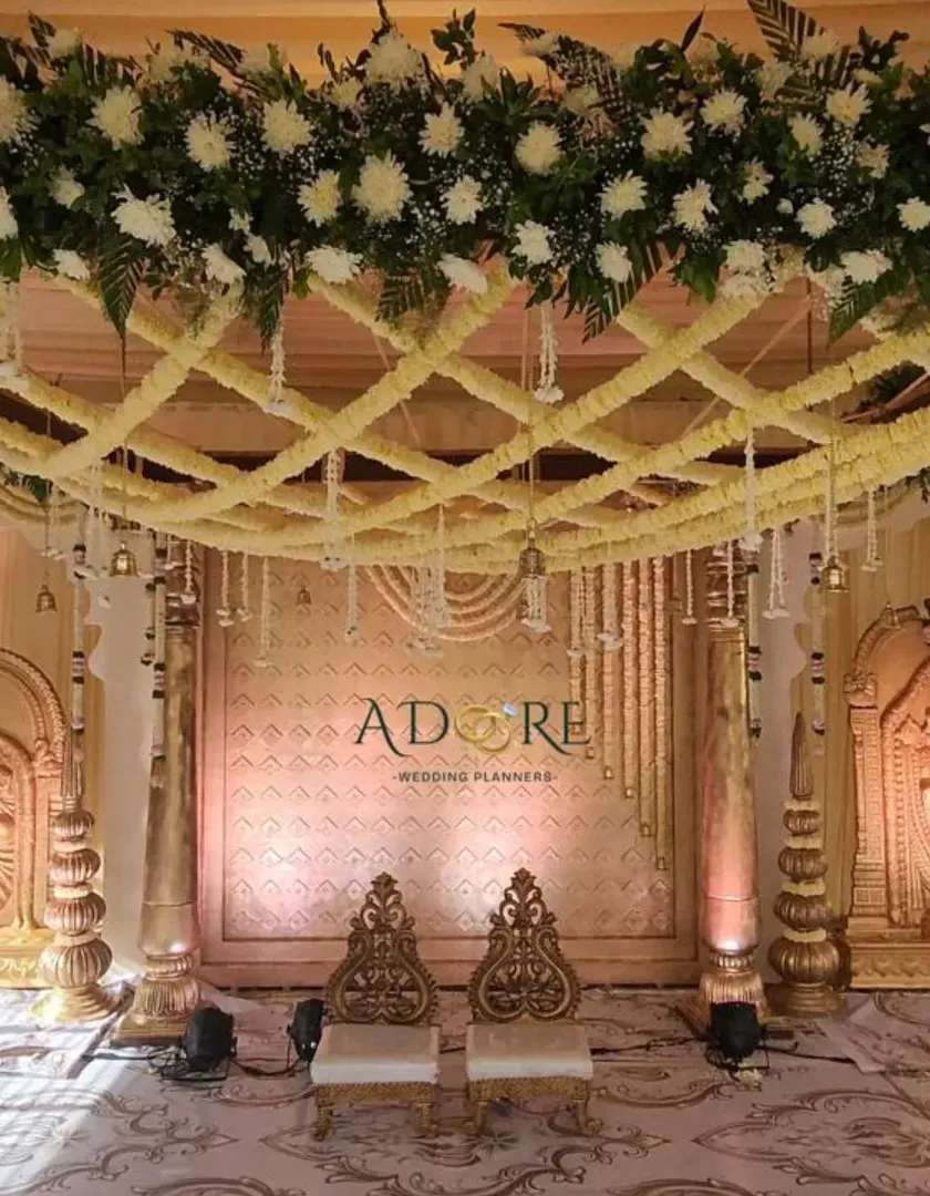 I specialize in creating authentic settings for traditional ceremonies. This includes South Indian themes like 'Banana Grove' with custom props, classic temple-style mandaps, and beautiful 'unjal' (swing) setups.