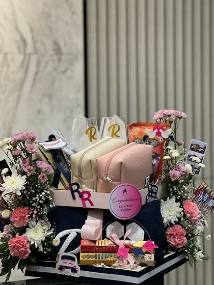 I believe a gift for the newlyweds should be as unique as their love story. I dig into what makes them tick to create personalized hampers, from matching travel sets for their honeymoon to custom keepsakes like engraved wine glasses or a poker set with their initials.