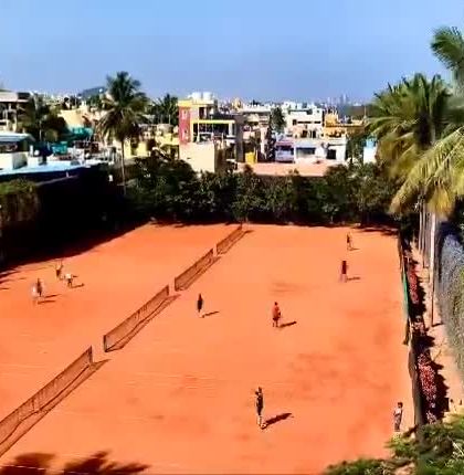 - Everything happens on our four red clay courts in Bangalore. The surface is proper - kept ready for those long rallies and last-point slides.
