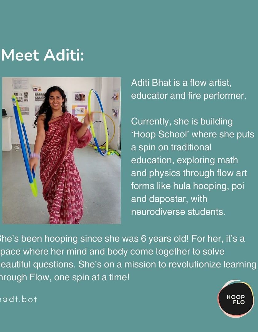 Flow arts thrive in community, and I am passionate about sharing my knowledge and connecting with fellow artists. I offer beginner-friendly workshops for hula hoops, poi, and dapostar, and I am an active participant in the vibrant Bangalore flow arts scene.