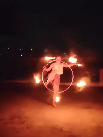 I use a variety of fire props, including multi-wick hoops and technical fans, to create high-impact, visceral performances. These acts are designed to be bold and captivating, perfect for adding a dramatic and unforgettable element to festivals, private parties, and outdoor events.