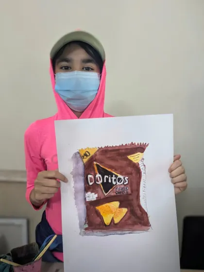 We focus on teaching students to observe and render everyday objects with accuracy. This section showcases work from various exercises, including still life with food, household items, and product packaging, using mediums like watercolor, pencil, and charcoal.