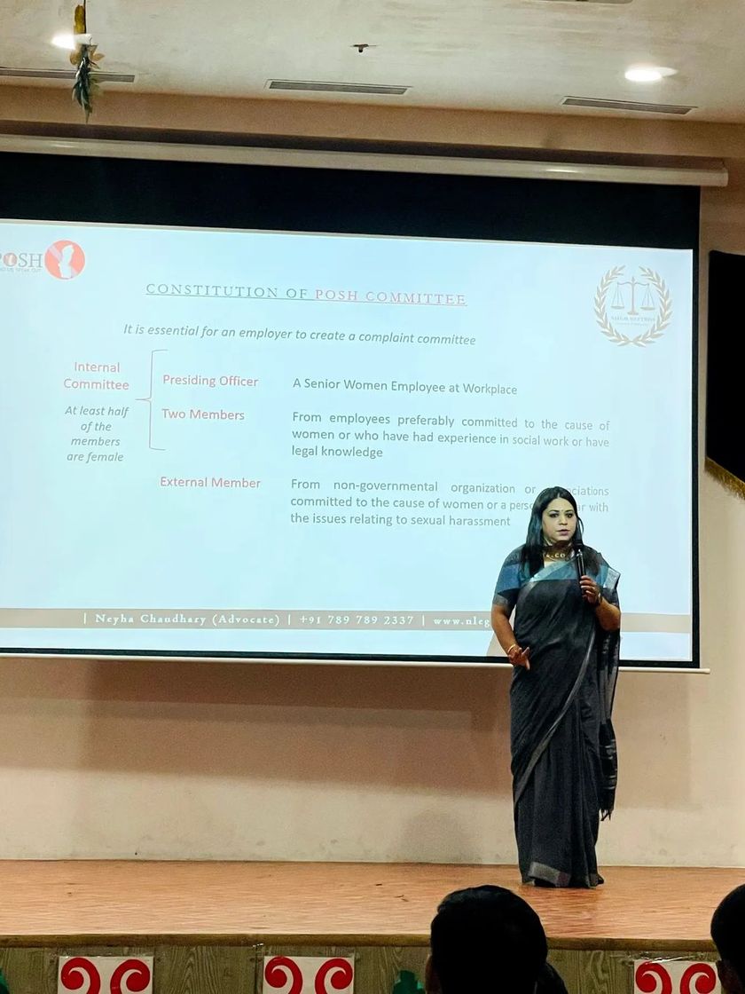 I am frequently invited to speak at conferences and join panel discussions on topics ranging from legal compliance for startups to women's security. These platforms allow me to share my expertise as a POSH consultant and advocate, contributing to a broader dialogue on creating just and equitable systems in business and society.
