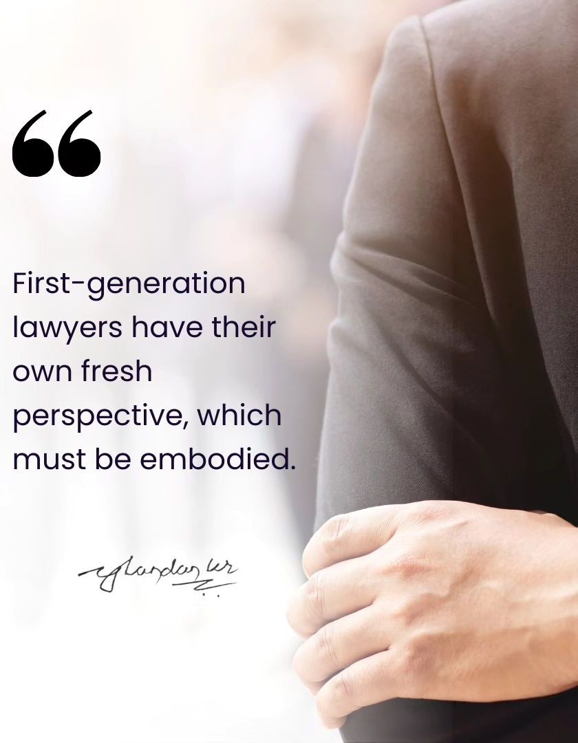 As a first-generation lawyer, my path is defined by resilience and a fresh perspective. I understand the challenges of building from the ground up because I have done it myself, one step at a time.