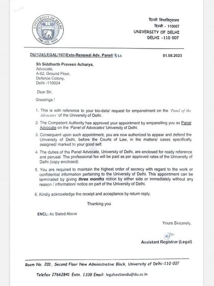I am humbled to have been appointed as counsel for the Union of India and esteemed institutions like Delhi University. I also regularly provide expert legal commentary on national television, where I aim to demystify complex legal issues for the public.
