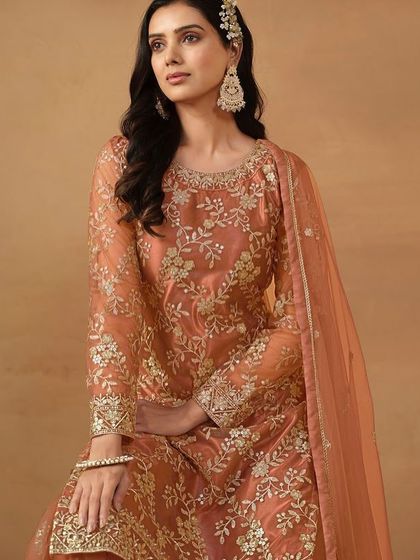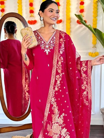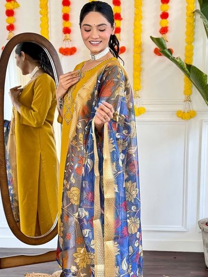 I use fabrics like Banarasi and Dupion silks, organza, georgette. You’ll see details like thread embroidery, mirror work, and zari weaving. No compromises here.