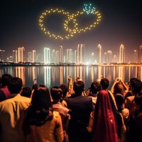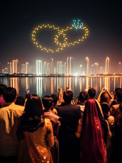 I specialize in creating unforgettable moments for your big day. From displaying your initials and forming giant hearts to creating intricate designs like champagne glasses, I can customize a sky-high story that is uniquely yours. These shows provide a stunning, quiet, and eco-friendly alternative to fireworks, perfect for any wedding venue.