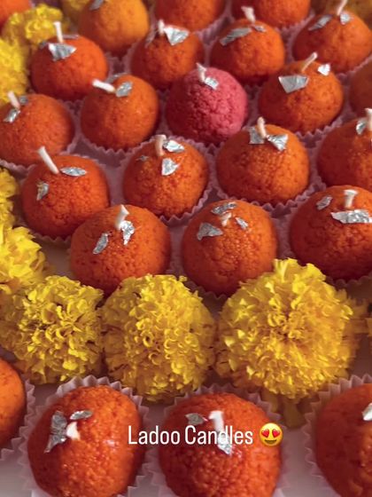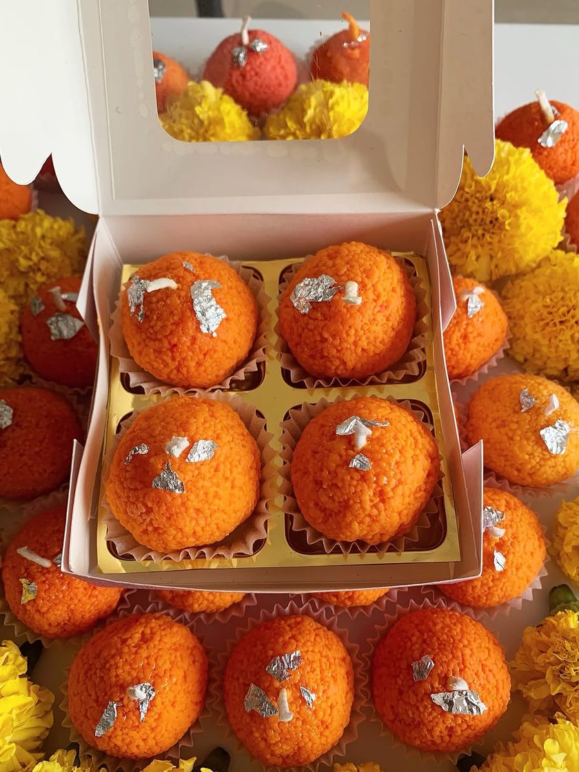 These are my pride and joy, designed to look just like a real Motichoor Ladoo. Each candle is handmade by me using natural soy wax and scented with a festive vanilla fragrance, perfect for bringing a warm glow to your home.