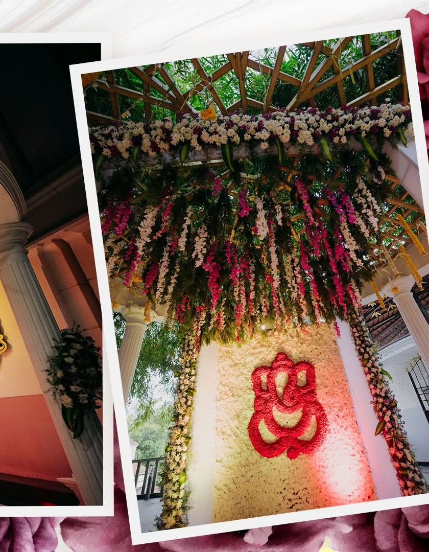 A collection of snapshots and collages capturing the diverse range of events we decorate. These images showcase various elements, from Ganesha idols and floral backdrops to unique props and lighting.