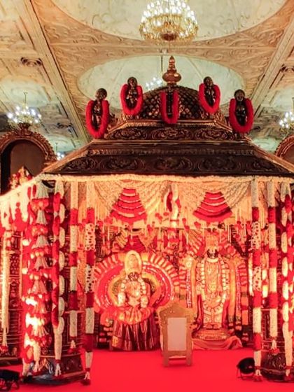 We create divine settings for your religious ceremonies and festivals. Our expertise includes decorating for Varamahalakshmi Pooja, Dasara Golu, and creating beautiful floral arrangements and idols for any auspicious occasion.