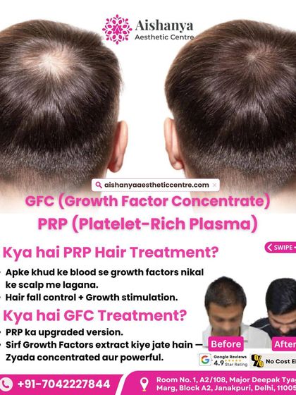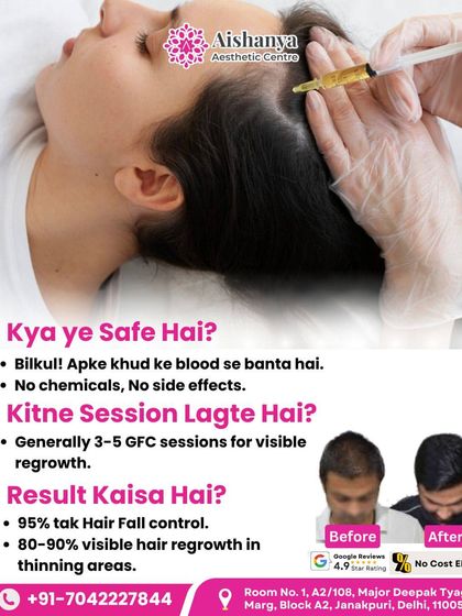- Growth Factor Concentrate therapy for hair: Advanced version of PRP, using your own blood’s growth factors. Safe, natural and controls hair fall up to 95%. Most folks need 3-5 sessions for real changes.