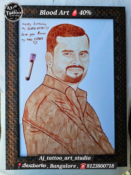 - You bring the idea—nimma idea na heli (tell me your idea)—and I’ll turn it into a custom blood art framing.