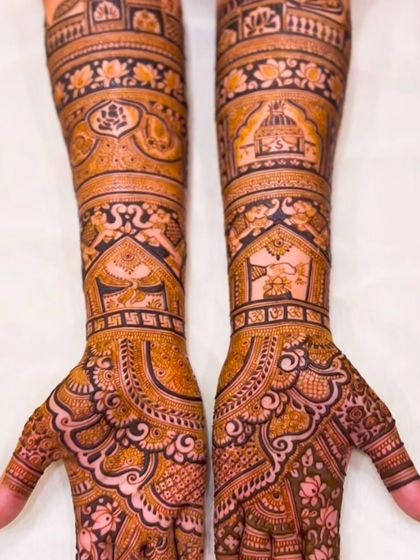 I create custom bridal mehndi with your story or classic designs, use only natural henna for a dark stain, and do the service at your home anywhere in India.
