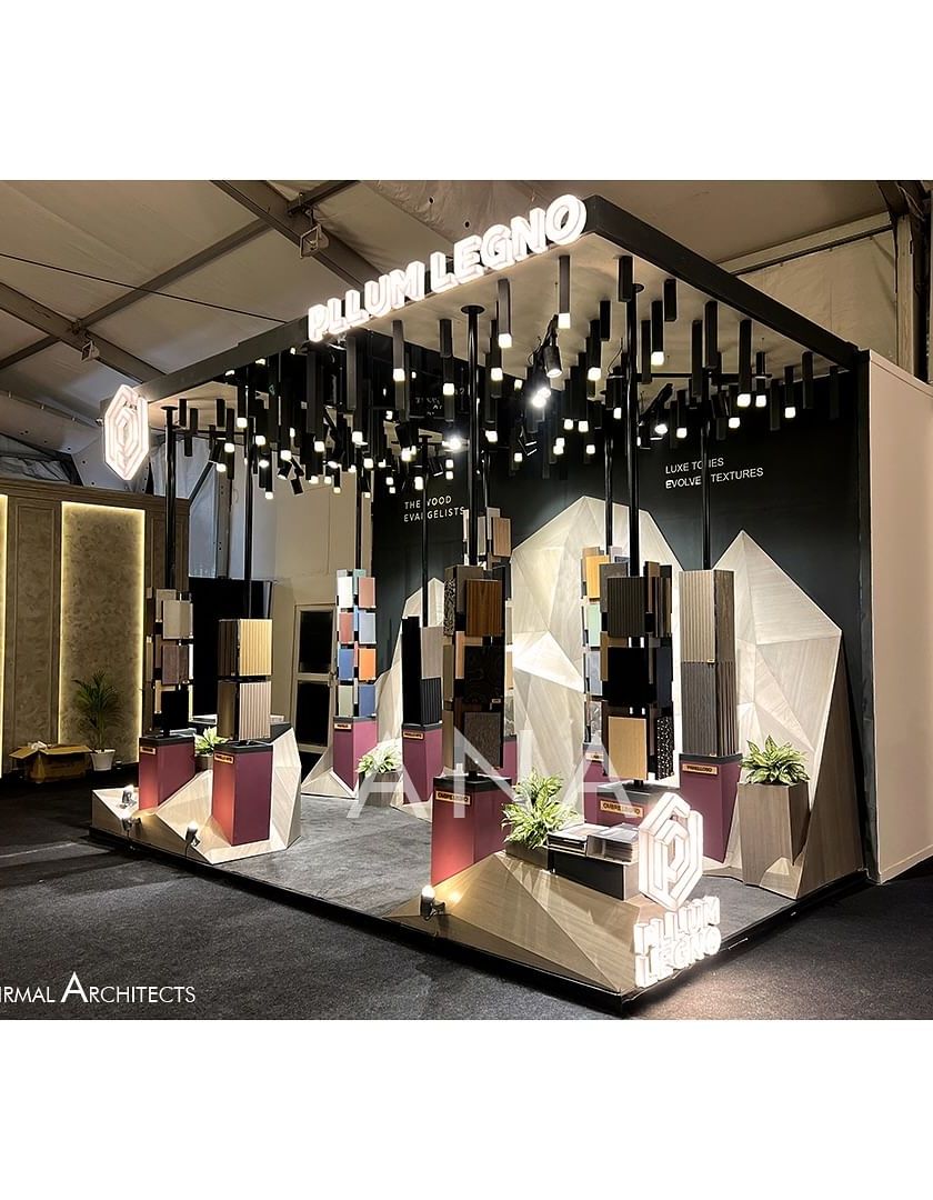 We often use strong geometry, including tapering forms, intersecting planes, and the interplay of mass and void, to create powerful architectural statements. This approach results in exhibition pavilions that are visually striking and command attention, effectively communicating a brand's strength and confidence.