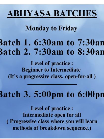 Here is all the practical information you need to join us. I offer a variety of batches throughout the day, both online and in-person, for different levels. Find the one that fits your life and your practice level, and just send me a message to start.