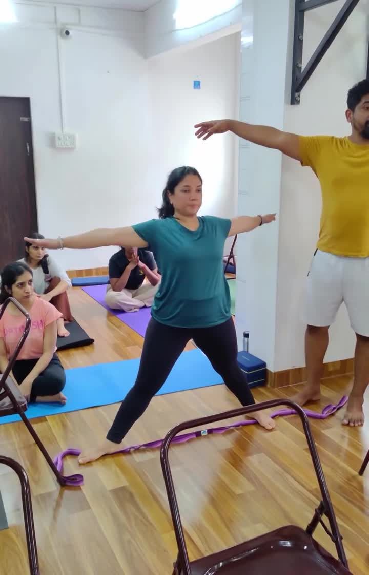 Come practice with us at our studios in Andheri West and Malad West. The energy of practicing together in a group is special. We focus on alignment, breath, and supporting each other, using props like chairs, blocks, and belts to make yoga accessible for every body.
