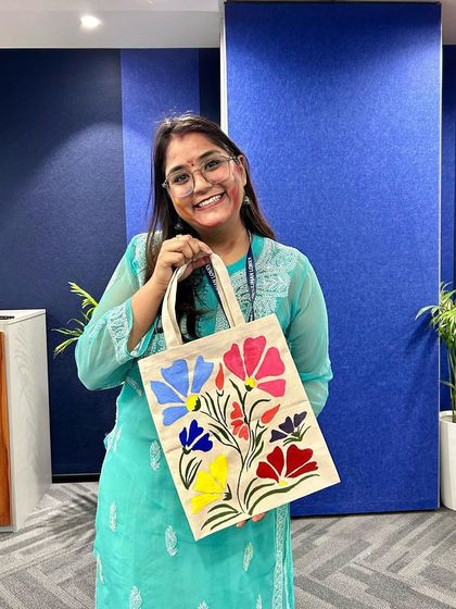 Hi, I’m Tanvi. Walking back into Maitreyi College always gives me that old, familiar rush. Those gardens? Uff, they’ve seen everything - plans, gupshup (gossip), last-minute exam panic, and even the occasional rona-dhona (crying and drama). Professors still rooting for me, that’s something special. Off the canvas, I’m all about chai breaks, mountain escapes, sunsets after workshops, and my own pasta experiments. Painting is my space to just breathe, and I try to share that peace with everyone around me.