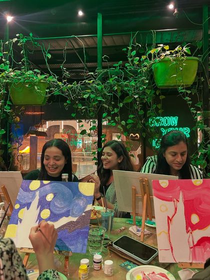 It’s not a strict art class - more like a creative party. Good music, chill atmosphere, and zero pressure. Bilkul koi judgment nahi (absolutely no judgment). If you’ve never painted before, you’re actually my favourite kind of person to have at a session. I’ll guide you, but you’re free to do your own thing. Mistakes? We celebrate them. Sometimes they make the best art.