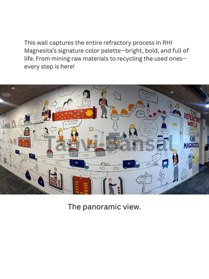 I transform office spaces into inspiring environments that reflect company culture. From detailed process-flow murals for global leaders like RHI Magnesita to vibrant, playful art for cafeterias at Dhruva Advisors, each piece is designed to boost morale and tell a unique brand story.